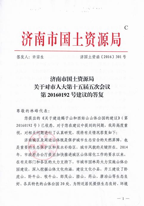 關(guān)于轉(zhuǎn)發(fā)濟(jì)南市國土資源局對我公司市人大代表的答復(fù)